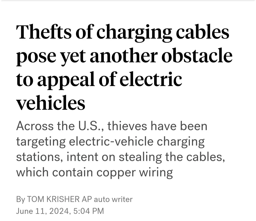 Thefts of charging cables pose yet another obstacle to appeal of electric vehicles