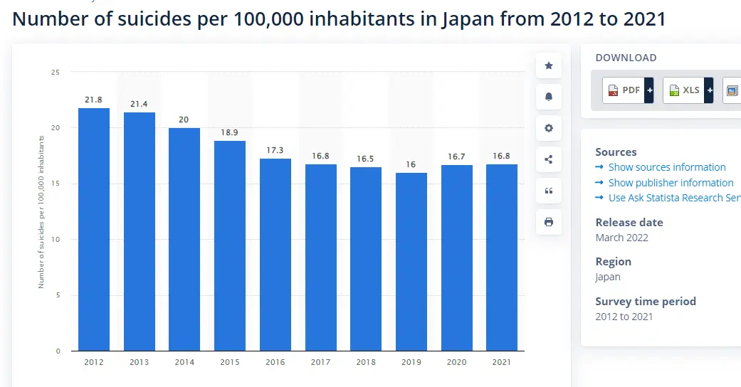 Compared to the US, where the suicide rate really did go up and has been going up for years.