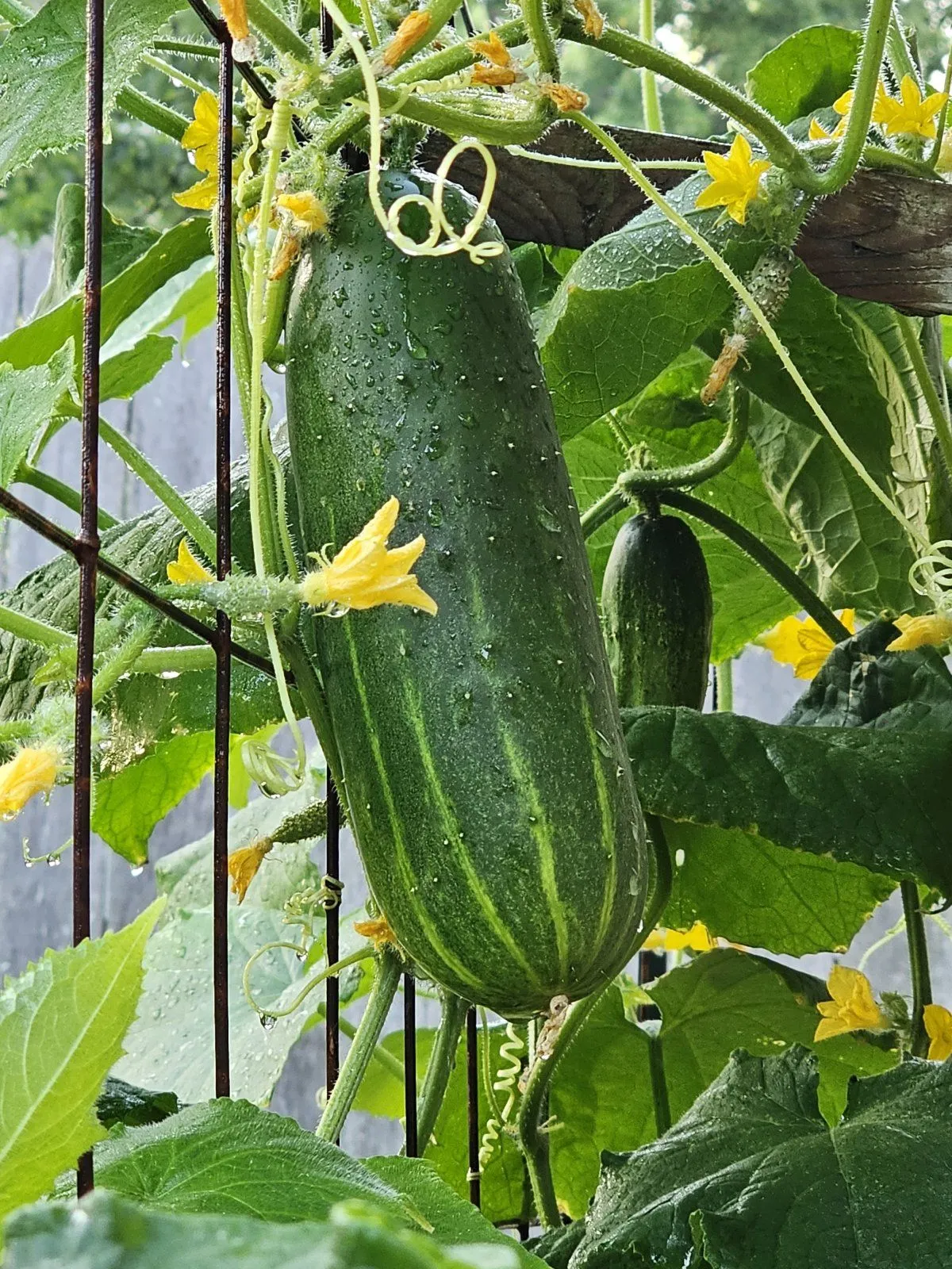 You can pick 'em young and they are out of this world pickles!and my cucumbers are still going gangbusters.