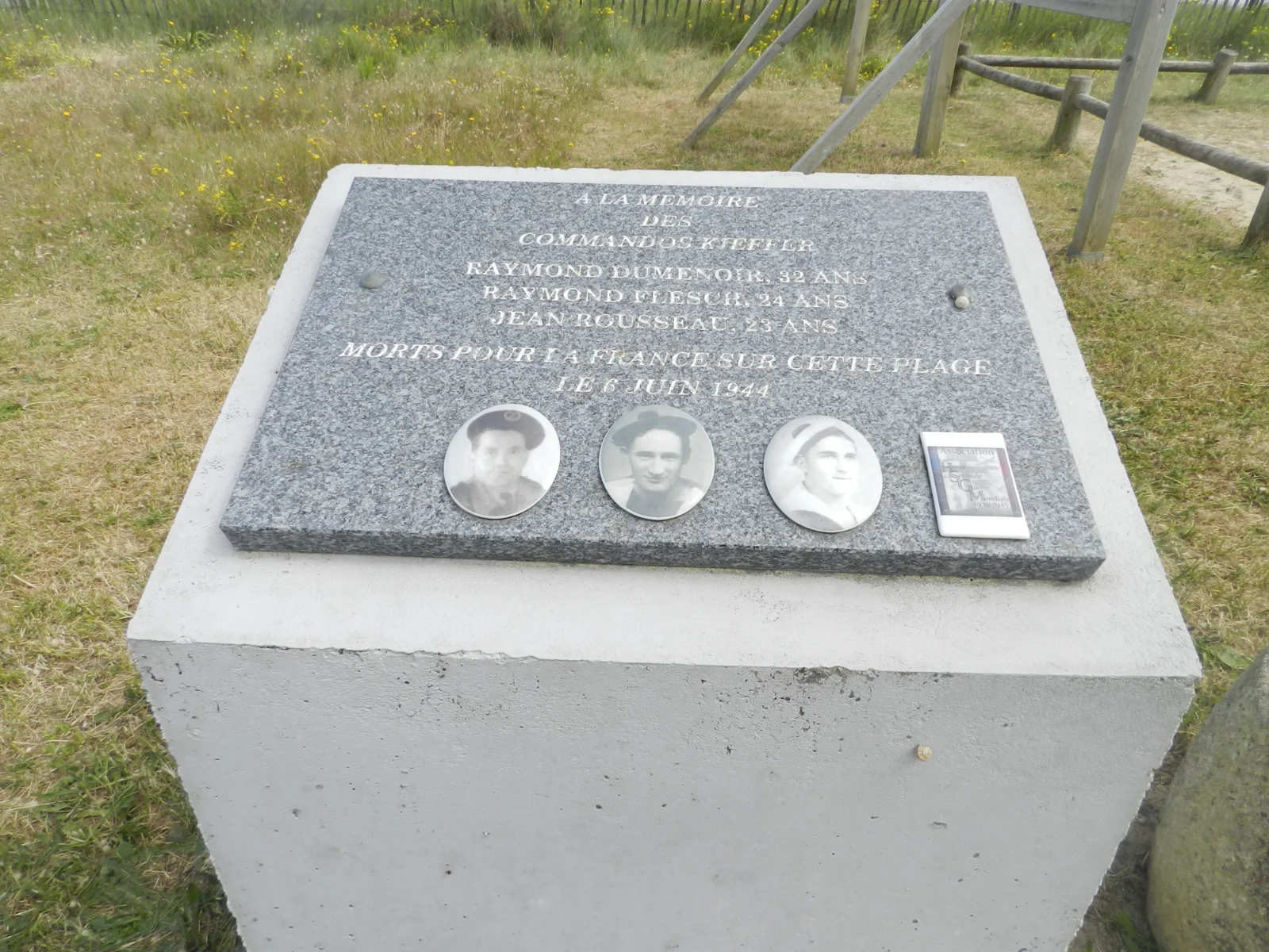 This image is a monument to three french soldiers who were killed on Sword Beach landing with the British they were from a Commando