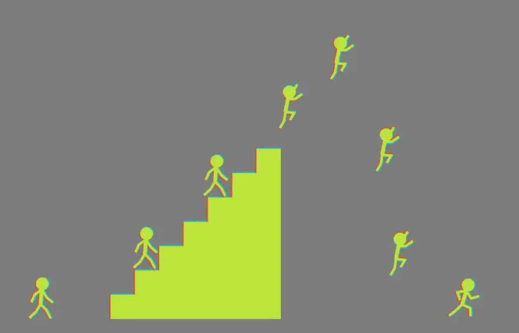 Nothing is actually moving except the stick figure running in place.