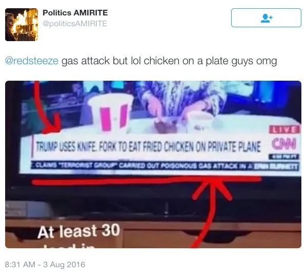 FRIED CHICKEN ROCKS!!!!! Don't tell me every southern born man and woman doesn't eat it, because I know better!Fried chicken's more nigga than blue collar, girl.Really? Trump is eating like a blue collar soon to be obese idiot...yaw know in the real world, this billionaire eats caviar and squash bits.Trump eats a lot of fast food. He should be careful at his age.