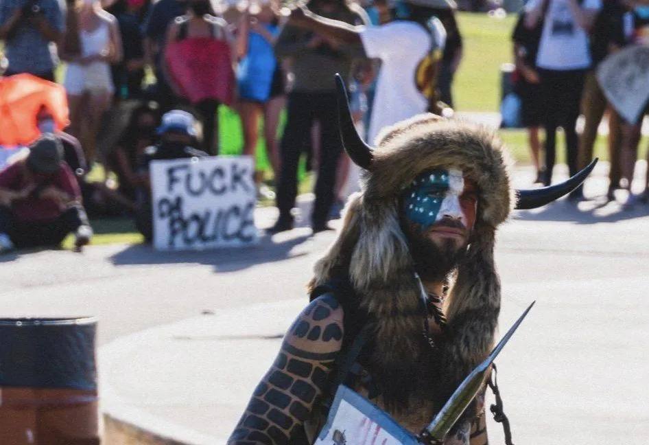 This dude is very recognizable and has been at numerous protests in Arizona. He's a QAnon supporter, calls himself Q Shaman.I am beginning to think that there is some purposeful disinformation by some Deep State actors that don't give a shit what the right, or the left think or feel, nor if they blame each other.