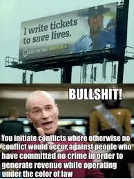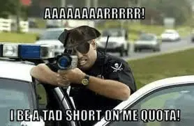 A county road pirate jacked me this morning, and he lied about how fast I was going, (I was going between 70 and 75 in a 65, he wrote me up for 81), he lied about it being a construction zone, and he had a shitty attitude on top of it all. He was at least the 4th road pirate ambush I had seen this morning so I was carefully watching my speed, and I know damn good and well how fast I was going. I handed him my DL and he never even bothered to ask for registration or proof of insurance, he just went and wrote up the ticket real quick and went back to his ambush spot to look for more folks to steal from. He was masked and refused to give me a business card when I asked, too.