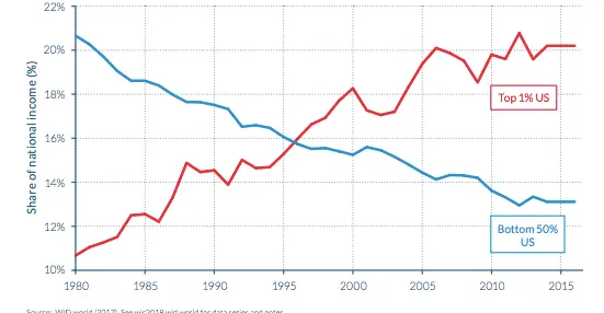 Globalization. You erroneous assumption is that the pie is a zero sum gameThen why do the rich have so much more now than 1980 and the middle class and poor have so much less? The pie is as big as the pie is. If the rich have more, the working class has less. Its math.