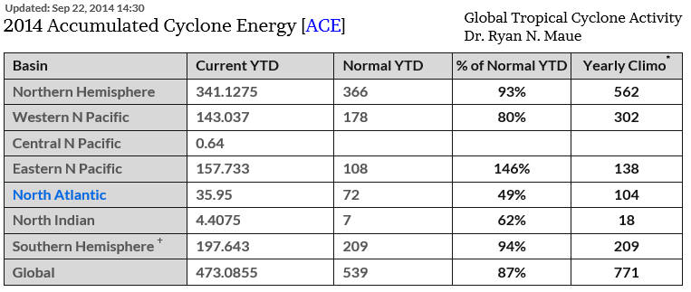 So if the planet is scorching hot and the oceans blistering hot than hurricanes should be rampant across the globe? Nope! The Atlantic continues with the longest streak of 9 straight years without a major land falling hurricane - longest stretch on record going back over 100 years. The other metrics include Accumulated Cyclone Energy (ACE Index) to measure the strength and longevity of Hurricanes/Typhoons and that too is 51% below average in the Atlantic - near 30 years lows and globally 13% below average. The Eastern Pacific off Mexico to Hawaii has been the active spot this year with weak El Nino type water temperatures - the exception to the global trends.