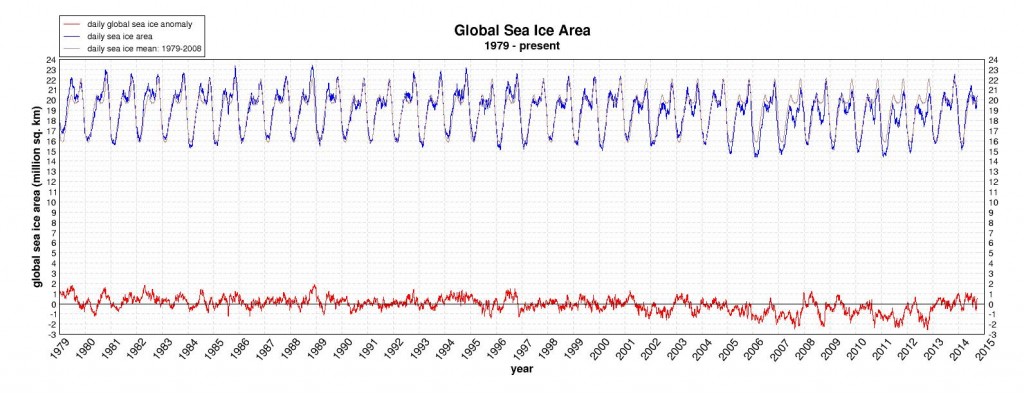 So assuming you believe the Oceans are blistering hot we have another inconvenient fact - Global Sea Ice is trending 600,000 sq kilometers to 1,100,00 sq kilometers ABOVE AVERAGE globally. Antarctica is bigger than it's ever been setting 7 records this past year and the North Pole is also +53% bigger than just two years ago and +12% bigger than 7 years ago when Al Gore said the North Pole ice would be gone in 2014 - ooopppssss - still here and expanding!