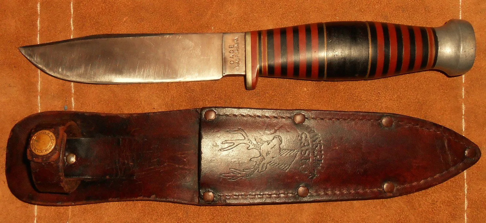 It's been sharpened but not to where it hurts the utility so thought I might get a more modern sheath for it (reserving the old one) and give it to my G-Grandson in a couple years.....It will make him a fine hunting knife.