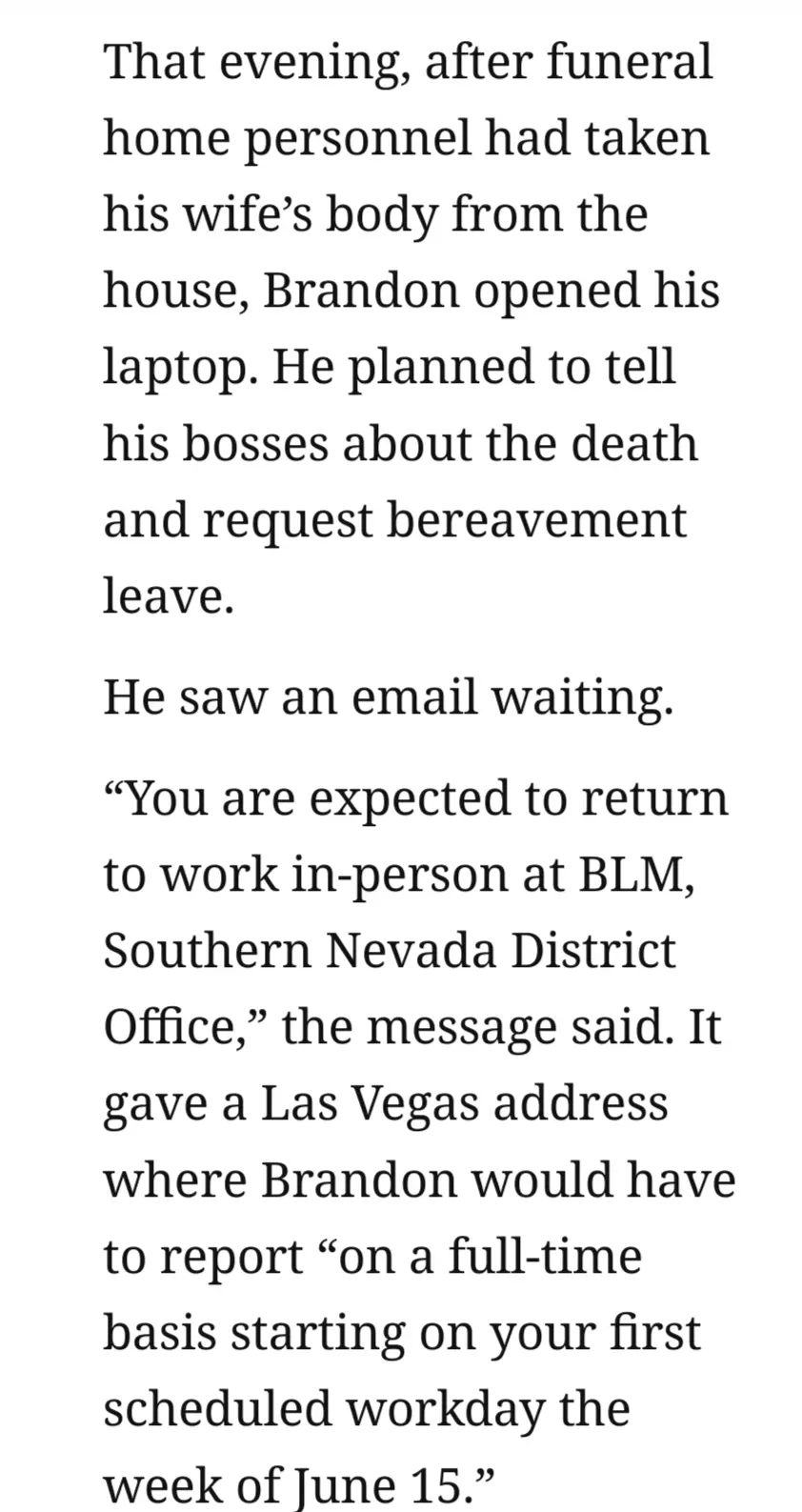 He was on leave caring for Mikel, his wife of 21 years, who was dying of colon cancer. Under the terms of Brandon’s absence from the federal Bureau of Land Management, he wasn’t expected to check his work email.