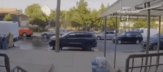 suspect standing up through the sunroof of a late model Honda CRV and opening fire at the teens.