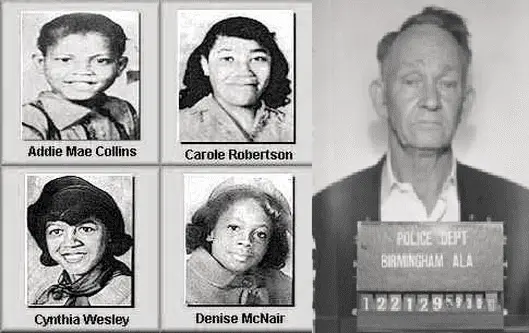 Addie Mae Collins had only lived 14 years. Carole Robertson had only lived 14 years. Cynthia Wesley had only lived 14 years. Denise McNair had only lived 11 years. All 4 had their lives snuffed out, their dreams erased, and the hopes for them extinguished by Thomas Blanton and three other cowardly bastards.