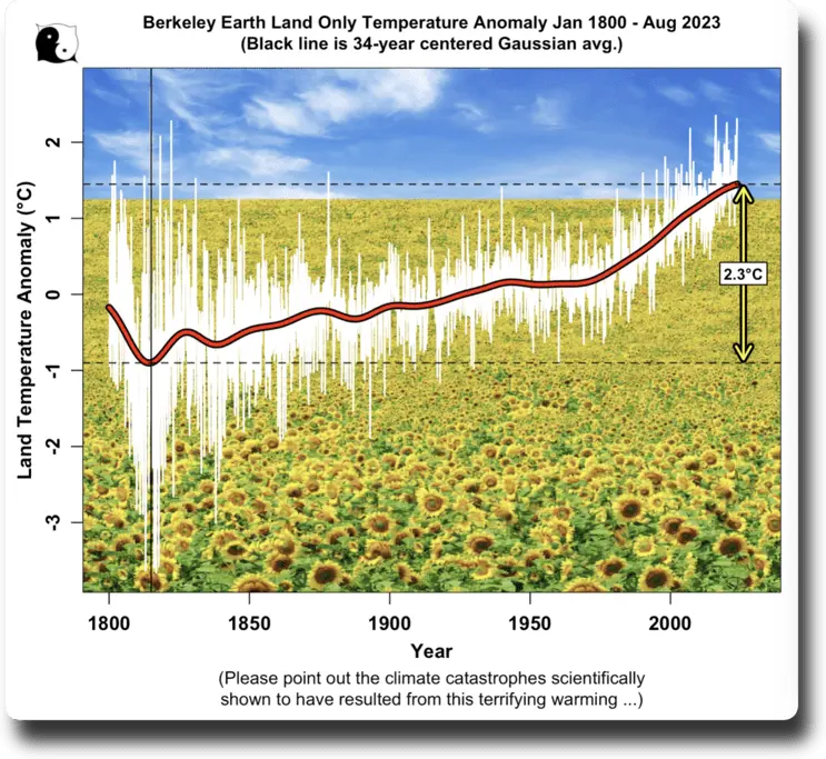Land temperatures have already risen more than the dreaded 2°C, with no cataclysmic consequences … there has been no historical “climate emergency” despite temperature increases.