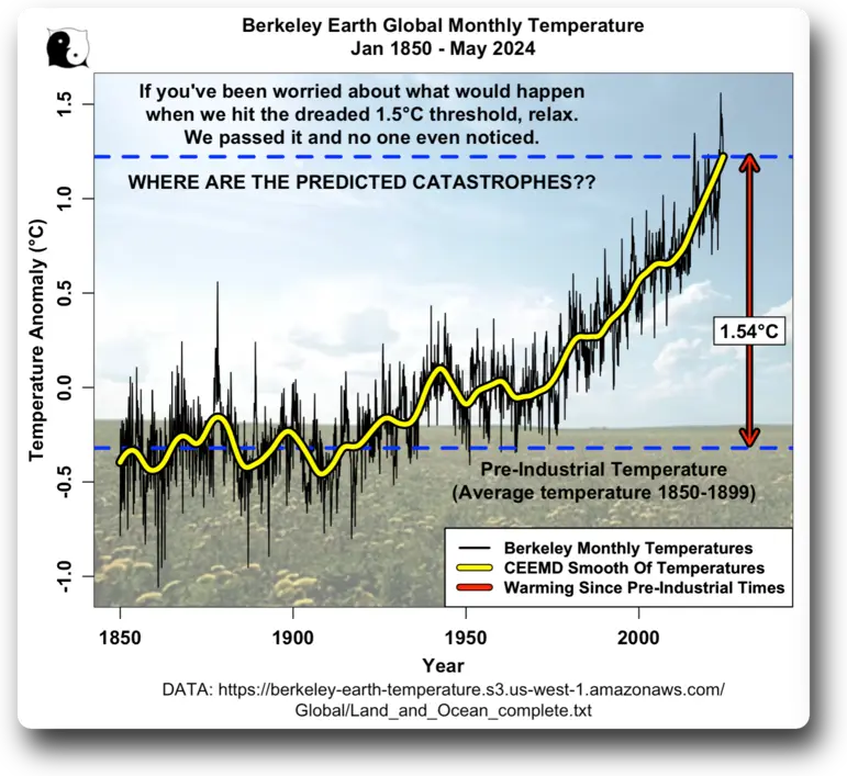 I see that Post #9 was too difficult for climate cultists to handle thus stay away, here is more bad news to show more evidence that we have already arrived at the made up doom 1.5C increase line and nothing terrible showed up.