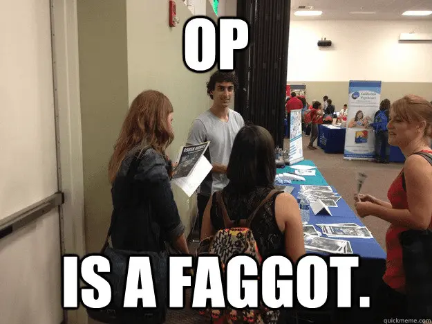 You've got a serious crush on me, don't you.You do not speak for everyone else. If you speak for anyone other than yourself, then it is only a very small handful of irrelevant faggots for which you speak; nobody of any significance at all.