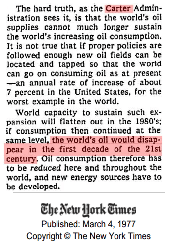 Here is an article from the 70s, one of the many about the doom and gloom that the world will run out of oil