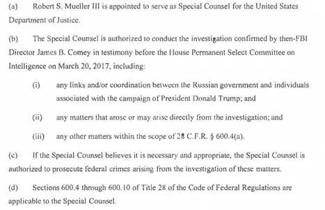 Lets start with the first part- what Mueller was appointed to do- here is the appointment letter
