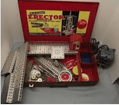 Erector Set for kids that came with little gears and real nuts and bolts. I spent many hours constructing bridges, cranes, towers, etc.