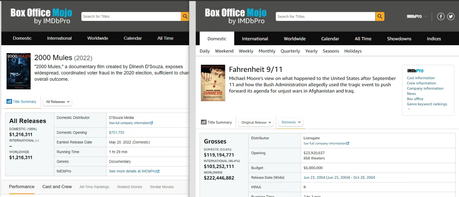 When the reality is....Most Successful Political Documentary in a Decade