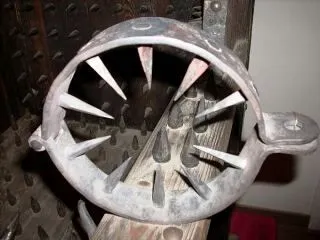 which was slowly tightened by the crank to crush feet between its solid iron plates, which were lined with hundreds of razor-sharp spikes to make the torture even more intense.