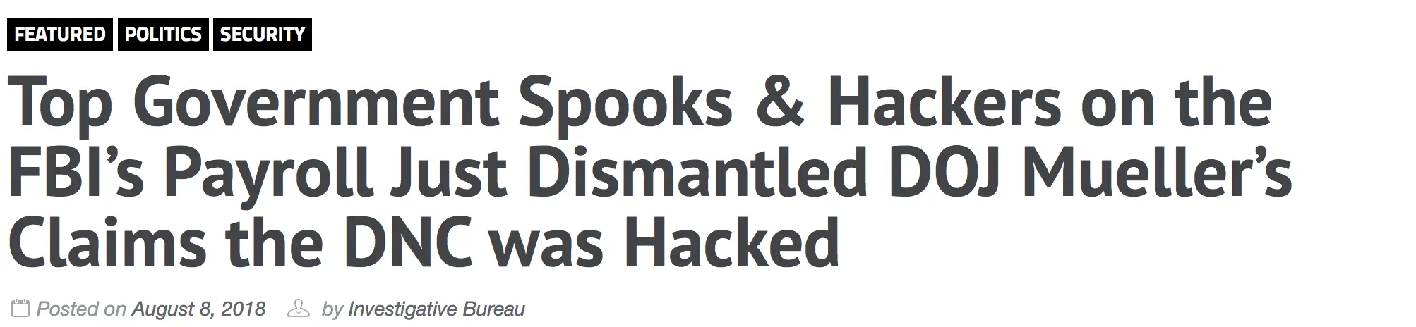 We asked a number of government spooks and hackers and contractors who have worked for the FBI and other spooky federal agencies to examine the Democratic National Committee’s chronic claims — which have been echoed by Robert Mueller — that it was hacked and that is how its internal emails were divulged prior to the 2016 election.