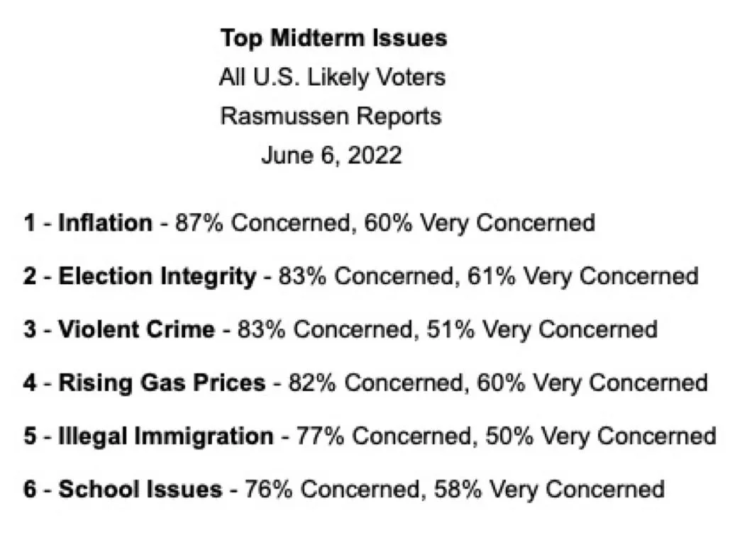 We are 30 trillion in debt... I don't think a lot of people know how much a trillion is... Just counting a trillion dollar bills one at a time would take decades.... And we owe 30 trillion... think of the interest rate alone... and biden wants to keep spending....I would have National Debt/Deficits as my #6 and move School issues down to #7, partly cuz I got no kids and besides I think with the proper staffing and training our schools ought to be safer. It bothers me that with interest rates rising and the debt growing so quickly that we will be handing off to future generations a horrible problem that will severely limit their options cuz the interest payments alone will be enormous.