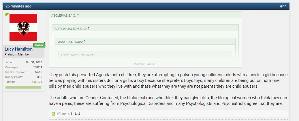 They push this perverted Agenda onto children, they are attempting to poison young childrens minds with a boy is a girl because he was playing with his sisters doll or a girl is a boy because she prefers boys toys, many children are being put on hormone pills by their child abusers who they live with and that's what they are they are not parents they are child abusers.