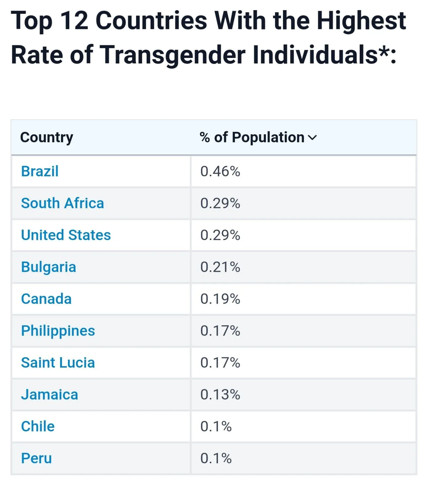 Interesting that the US and Brazil each have 1 million transgender folk.
