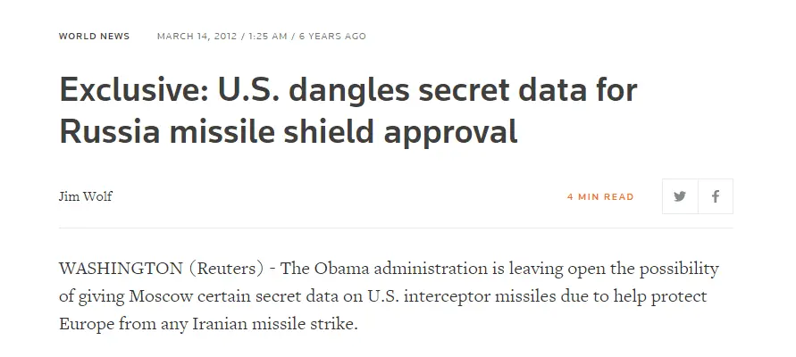 Exclusive: U.S. dangles secret data for Russia missile shield approval