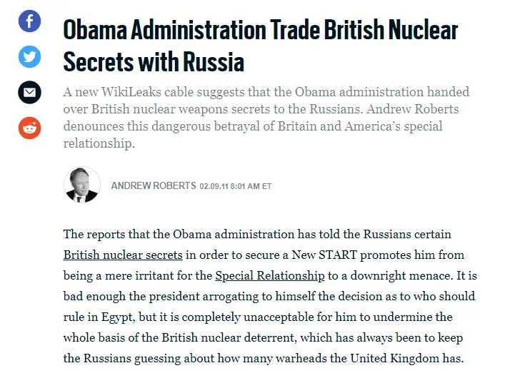 And The Obama Administration gave Russia secrets about Britain's Nuclear Weapons: