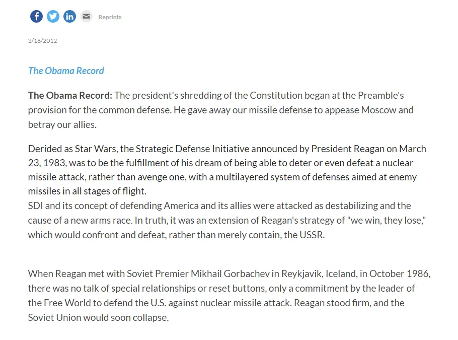 Disarming America: Obama Betrays Reagan's Dream | Investor's Business Daily