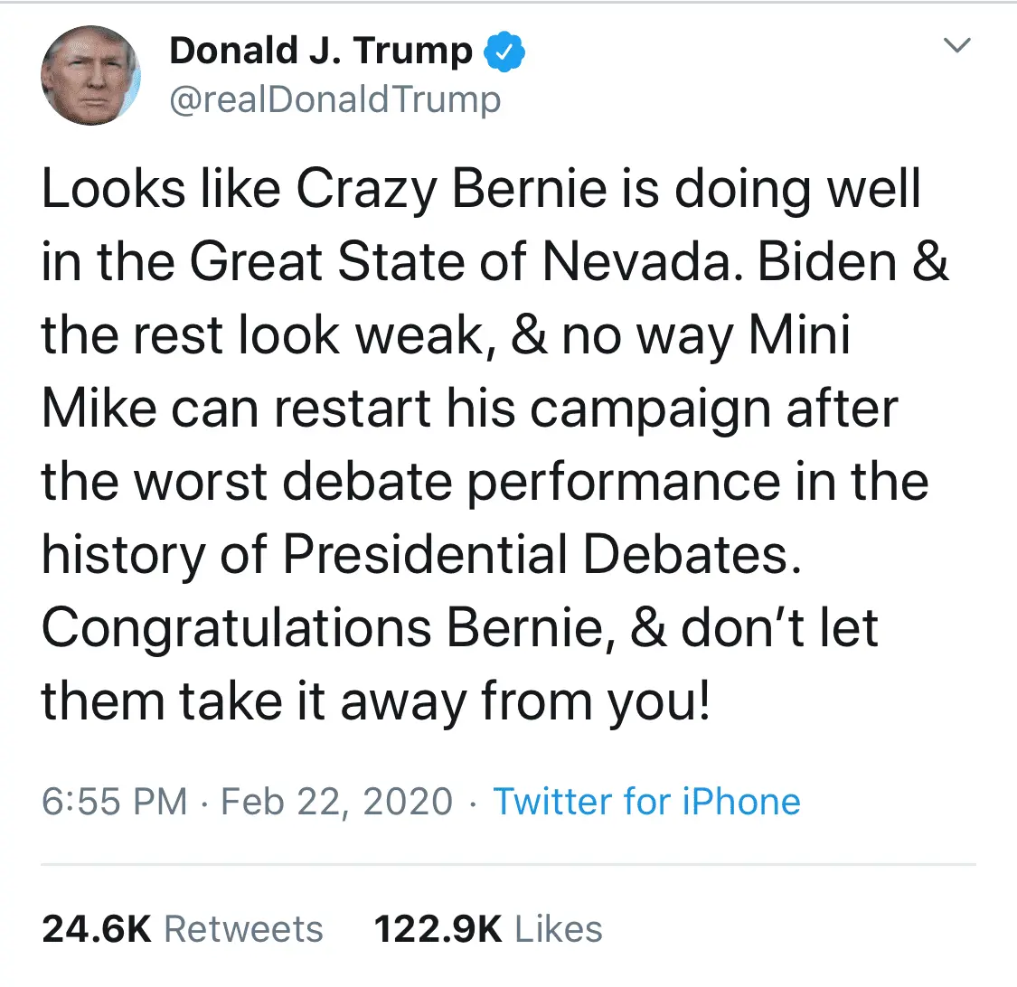 Yep, even when he mentions Bernie, Bloomberg is still his focus. Thanks for once again proving me correct.