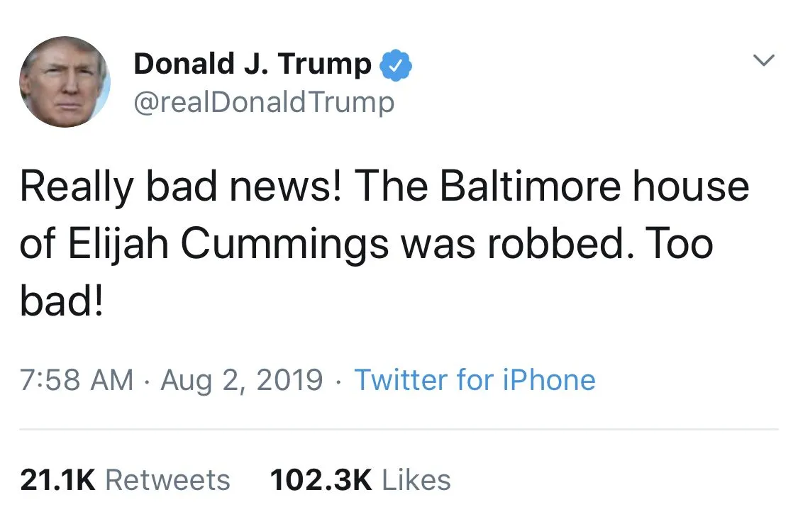 Yep. Maybe if Cummings did his job.Cummings is a victim?? Lol seriously have you seen his district?Nice, he mocks a victim.