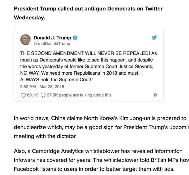 Also, a Cambridge Analytica whistleblower has revealed information Infowars has covered for years. The whistleblower told British MPs how Facebook listens to users in order to better target them with ads.