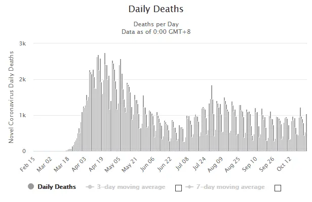 New infections are up 40% from the summer and rising in 47 states. We're averaging around 70k new cases a day now. Up from 40k. The seven day average today is 500k new cases. The death rate is still 2.5% or more. That's 12k people from just the last week that may die in the coming weeks.