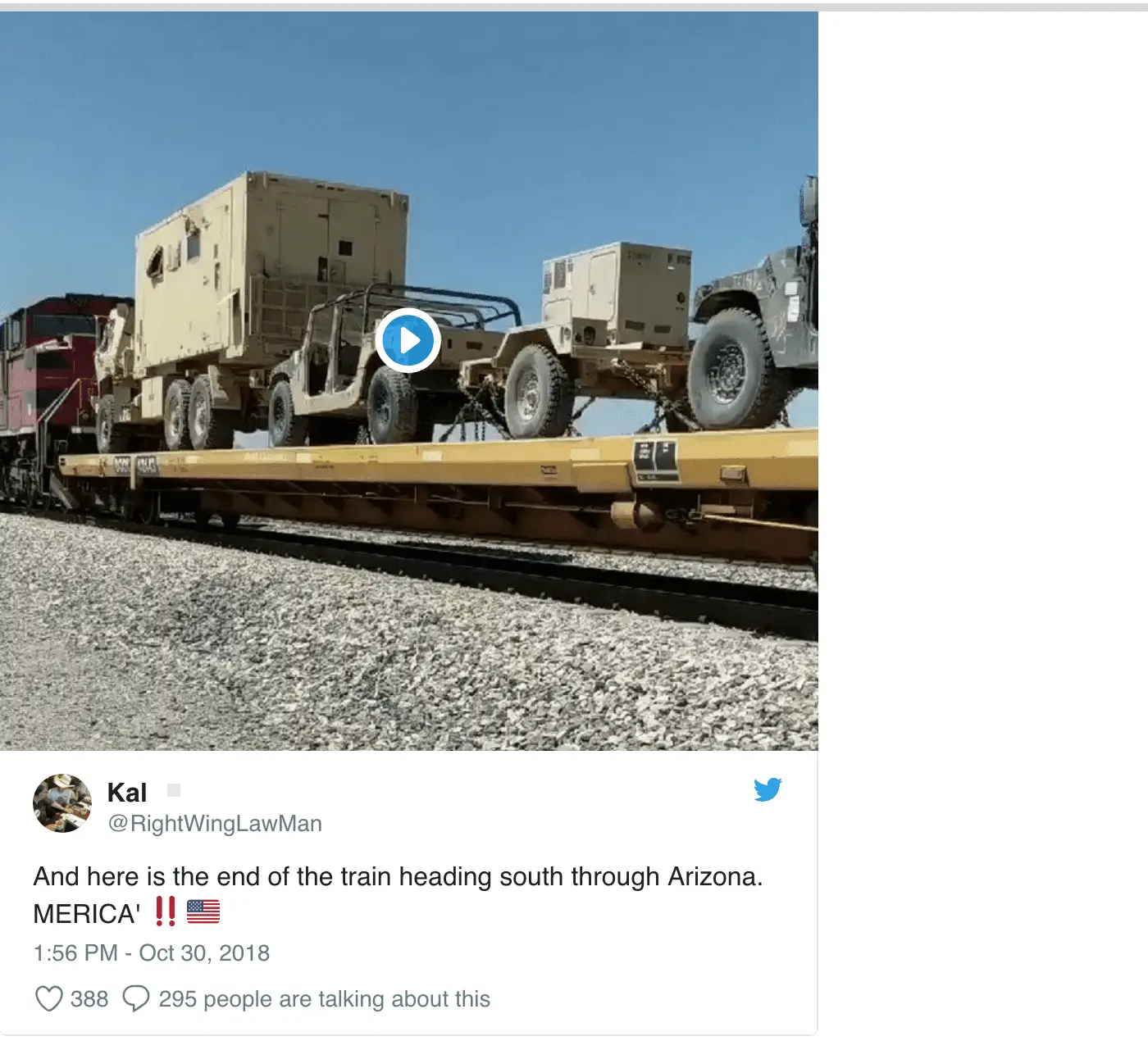Interesting, a lot of tanks on these trains clueless trendy's have no clue how the illegals coming in are being said to be ISIS and some MS13 but you know quickest way to shut them up on it is just tell them it's a conspiracy.