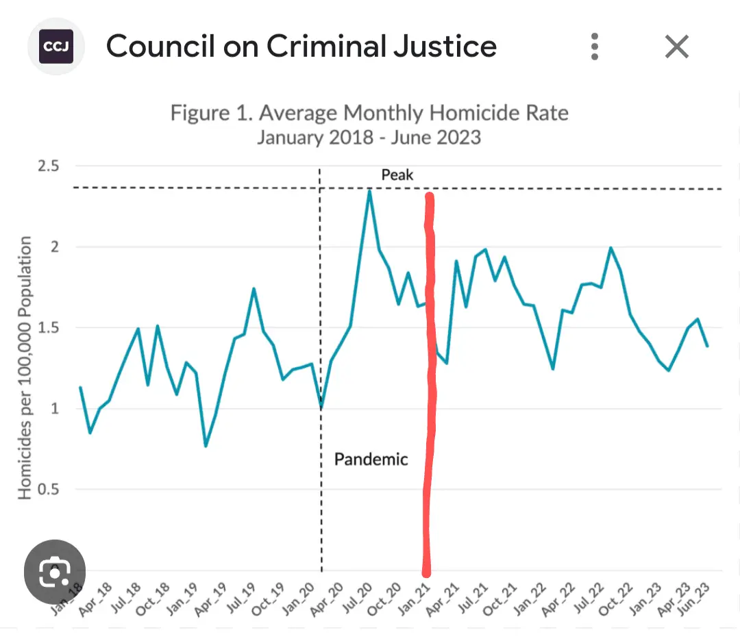 The inference being make is BIDEN lowered the crime rate. But the peak crime rate was ALREADY lowered before Biden took office.