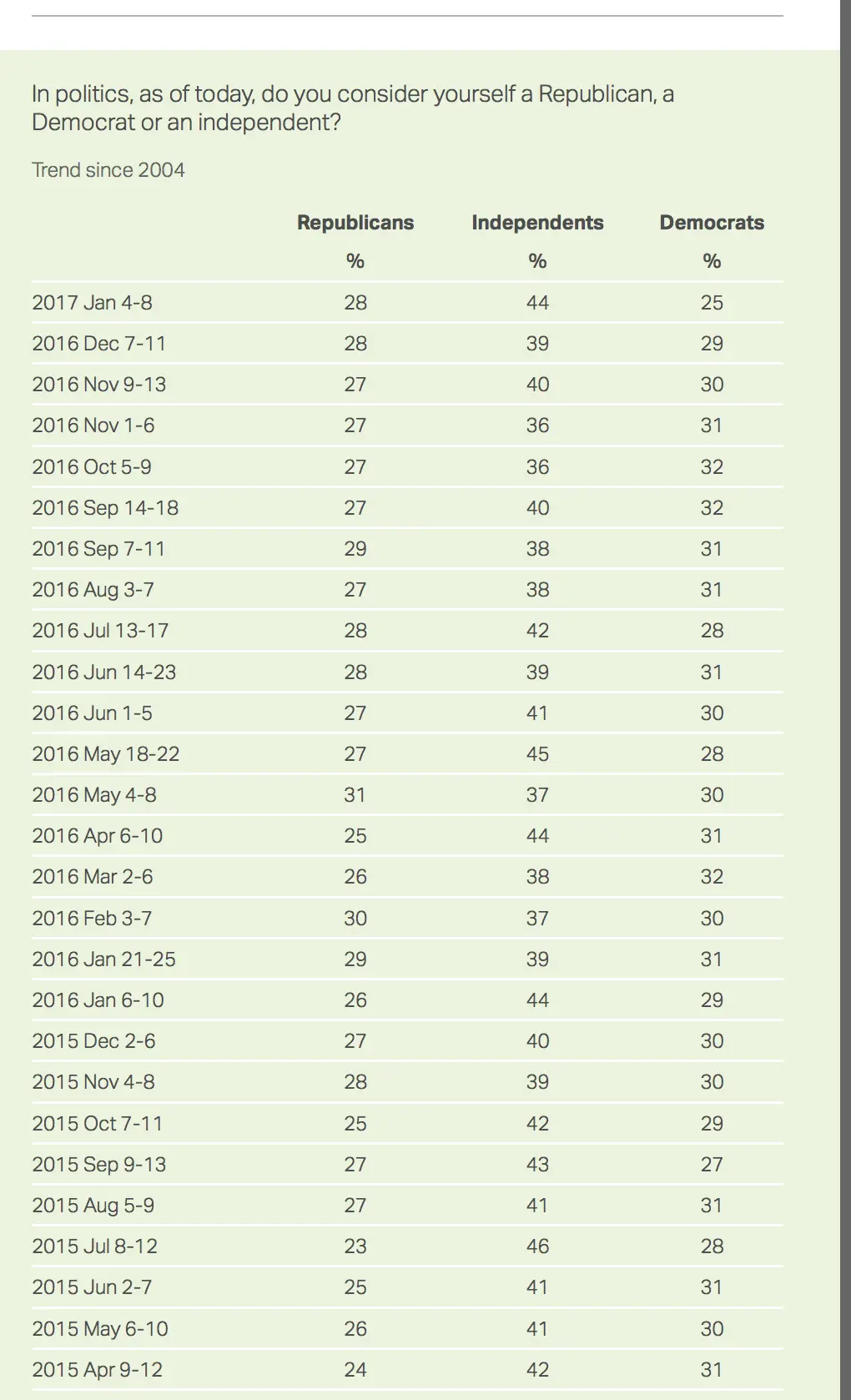 For example Real Clear is made up of these polls and this is for CBS News poll.
