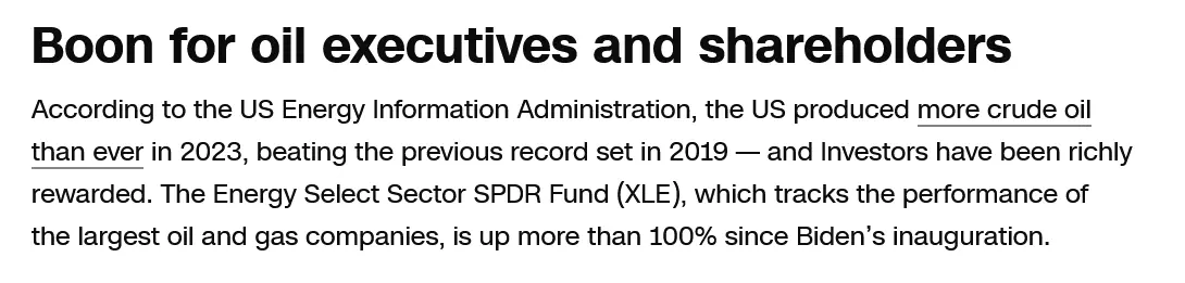 "the US produced more oil than ever in 2023, beating the previous record set in 2019."