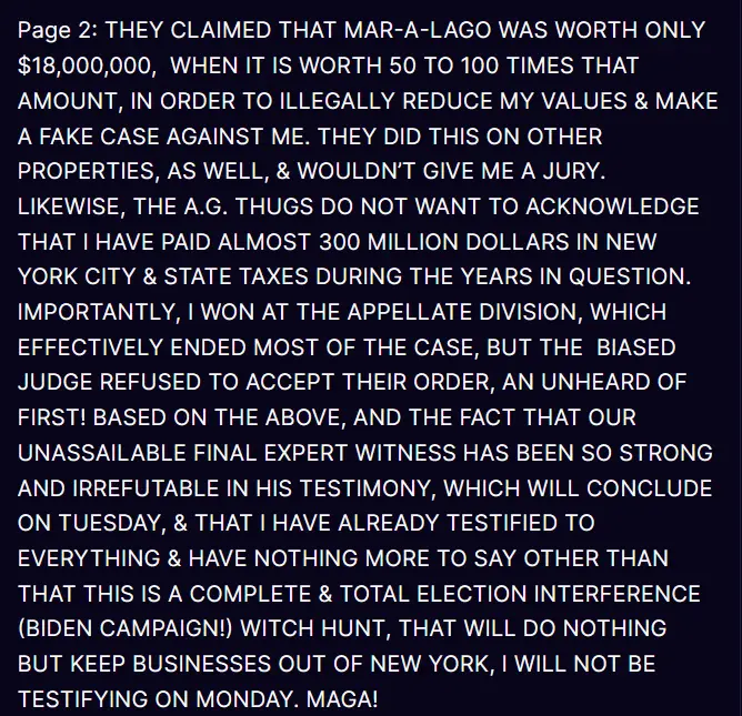 "The AG will be mean to me. Very unfair"!Good move, the prosecution was all ginned-up for Trump appearing, now they will have to scramble.