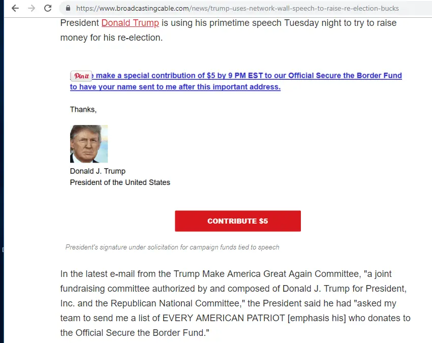 LOL! Nice try, did you compose that yourself? LMAOWould you care to post some documentation?Where's the email? All I see in your link is a hack from The Hill claiming that an email was sent.Trump fundraises off prime-time address