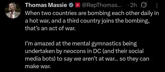 There's nobody better in Congress than Thomas Massie.And be careful following Massie... he is kind of out there...