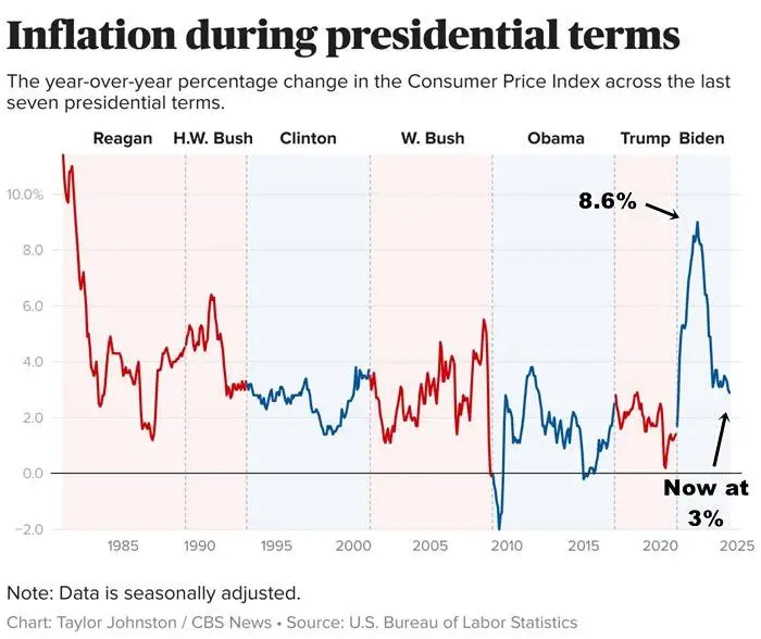 I didn't vote for him so I don't have a political dog in this fight. That said, it really isn't that hard to bring down inflation. Just admit that we are in a recession and it will freak everybody out and they will stop spending.Hundreds of times during his campaign, and again after the announcement that he had won the election, Trump has promised that he will lower inflation, "Donald Trump, U.S. President-Elect: I went on groceries. It's a very simple word, groceries. Like almost, you know, who uses the word? I started using the word, the groceries. When you buy apples, when you buy bacon, when you buy eggs, they would double and triple the price over a short period of time. And I won an election based on that. We're going to bring those prices way down".