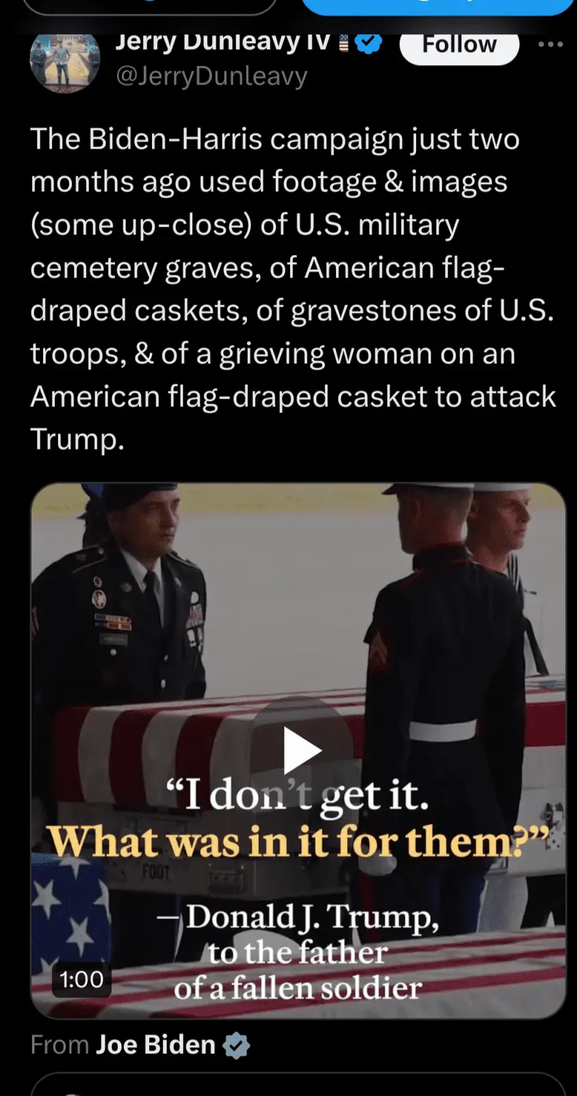 Trump sought to exploit fallen American soldiers for some perceived partisan gain – political theater both reprehensible and disgraceful; further proof that Trump was – and is – unfit to be president.How much do you want to bet that this Arlington staffer is a DEI hire, or a white liberal Marxist?