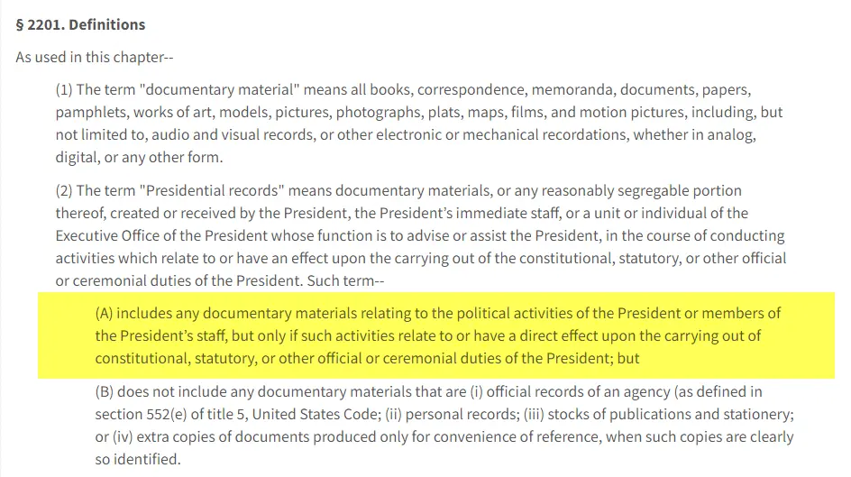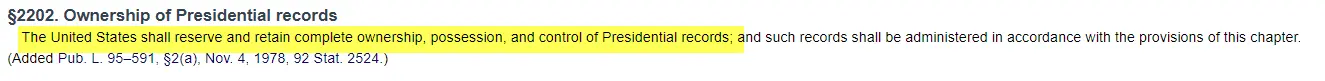 From your own link >>Section 2202 Ownership of Presidential Records: