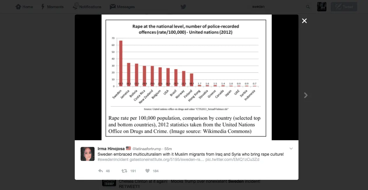 “I do not have a clue what he was referring to,” he said in a telephone interview. “Obviously, this could be connected to the fact that there has been a lot of negative reporting about Sweden, since Sweden has taken in a lot of refugees.”'