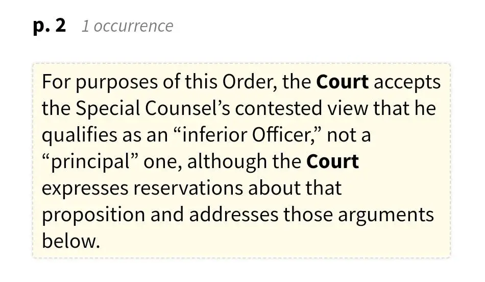 Gads you are ******* clueless. She said "For purposes of this Order" she accepted Smith's argument he qualifies as an inferior officer, but because of the powers Unconstitutionally granted to him, he's acting like a principal officer. She actually believes he's a principal officer, but the SC has never answered the question.LOLOLOL