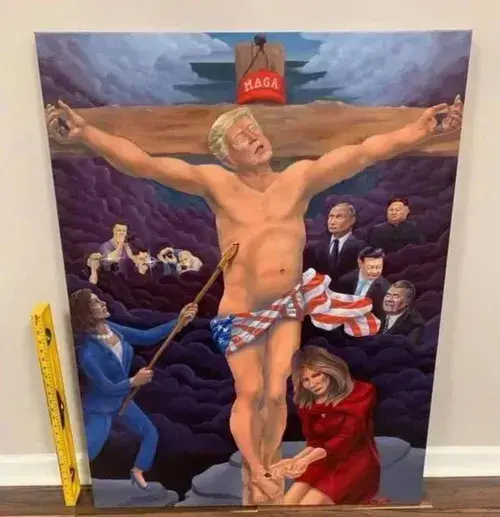 Trump is getting crazier by the day.“Trump delivered a bizarre explanation for his now-deleted Truth Social post in which he appeared to share a meme depicting him as Jesus Christ.
