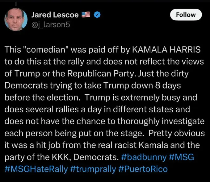 Who the **** is that? Social media isn't a legitimate source.we have operatives sabotaging these events. how'd you like that libera; comedian making trump seem fascist in madison square garden ....