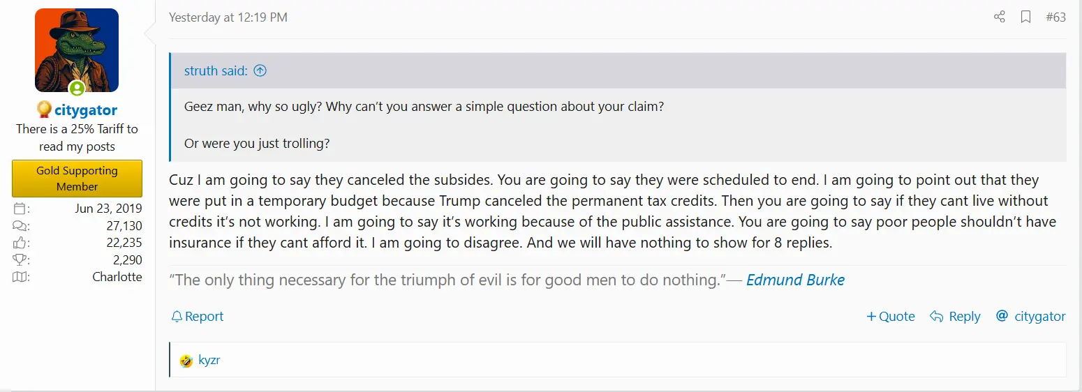 Dude. I predicted every line you typed - every line. Trump is already telling people that food prices are down and he has a solve for the healthcare costs he raised. His numbers are plummeting as everyone knows he is lying and he caused them. Good luck man. Republicans are getting out now cuz they read the midterm signs.Trump hasn't canceled the temporany Covid subs that are set to expire.