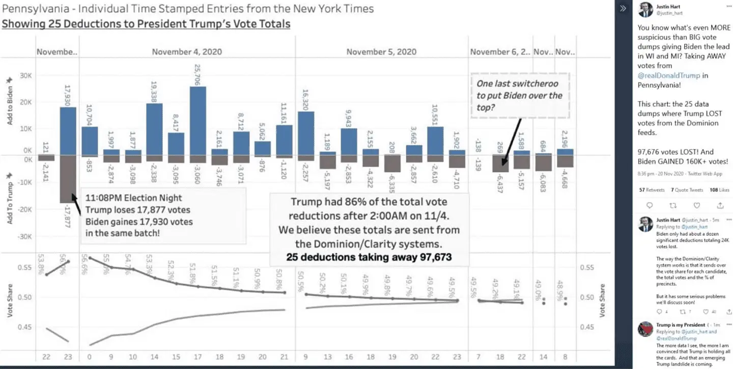 "Antrim County Judge in Michigan orders forensic examination of 22 Dominion voting machines," he tweeted. "This is where the untrustworthy Dominion machine flipped 6,000 votes from Trump to Biden. Spiking of votes by Dominion happened all over the state." (so far one machine appears to have had a 13% swap from Trump to Biden)